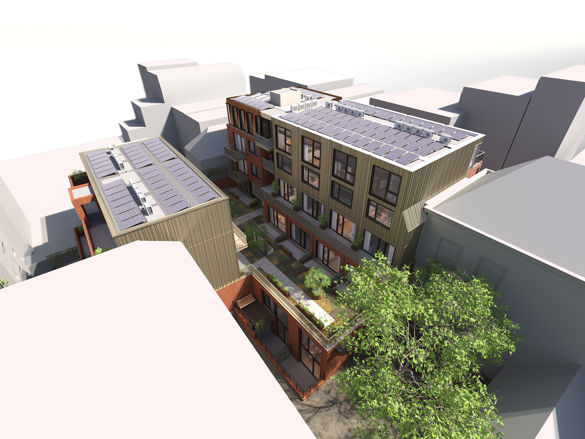 De 3-kamer achterhuiswoningen bestaan uit een woonlaag van circa 65m² gesitueerd op verschillende verdiepingen. De woningen beschikken over twee slaapkamers waarvan een eventueel ook als werkkamer kan worden gebruikt.